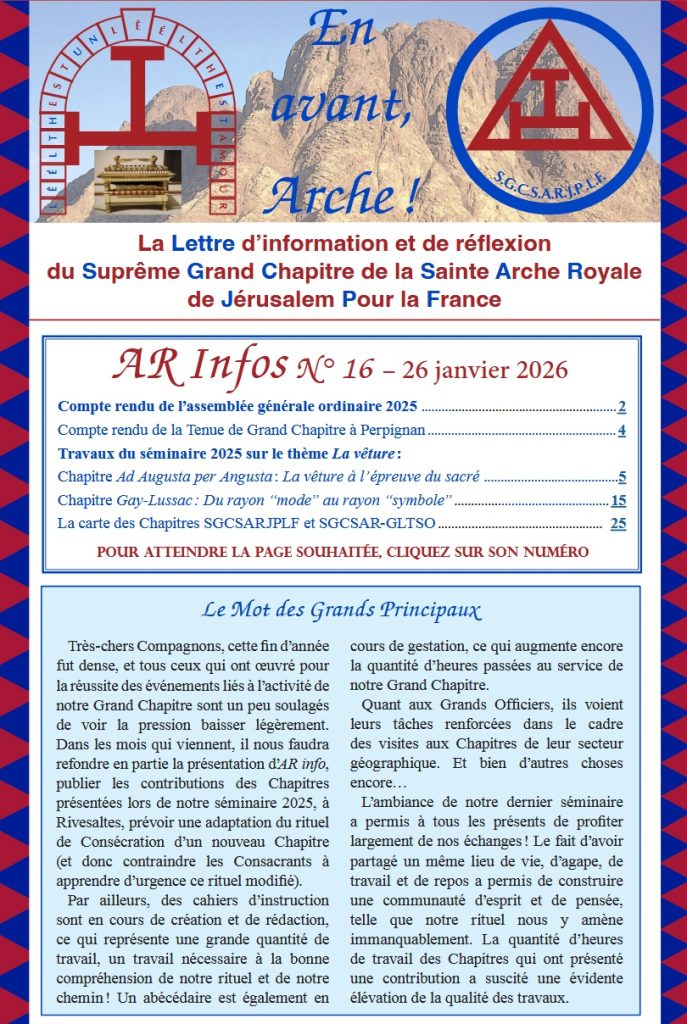 – La Tenue de Grand Chapitre de L’Arche Royale 2023 au Havre ………………………………….page 2