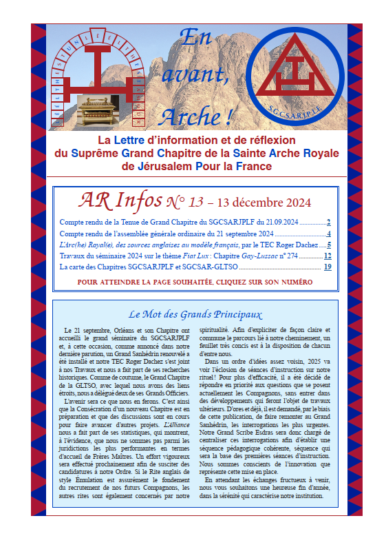 – La Tenue de Grand Chapitre de L’Arche Royale 2023 au Havre ………………………………….page 2